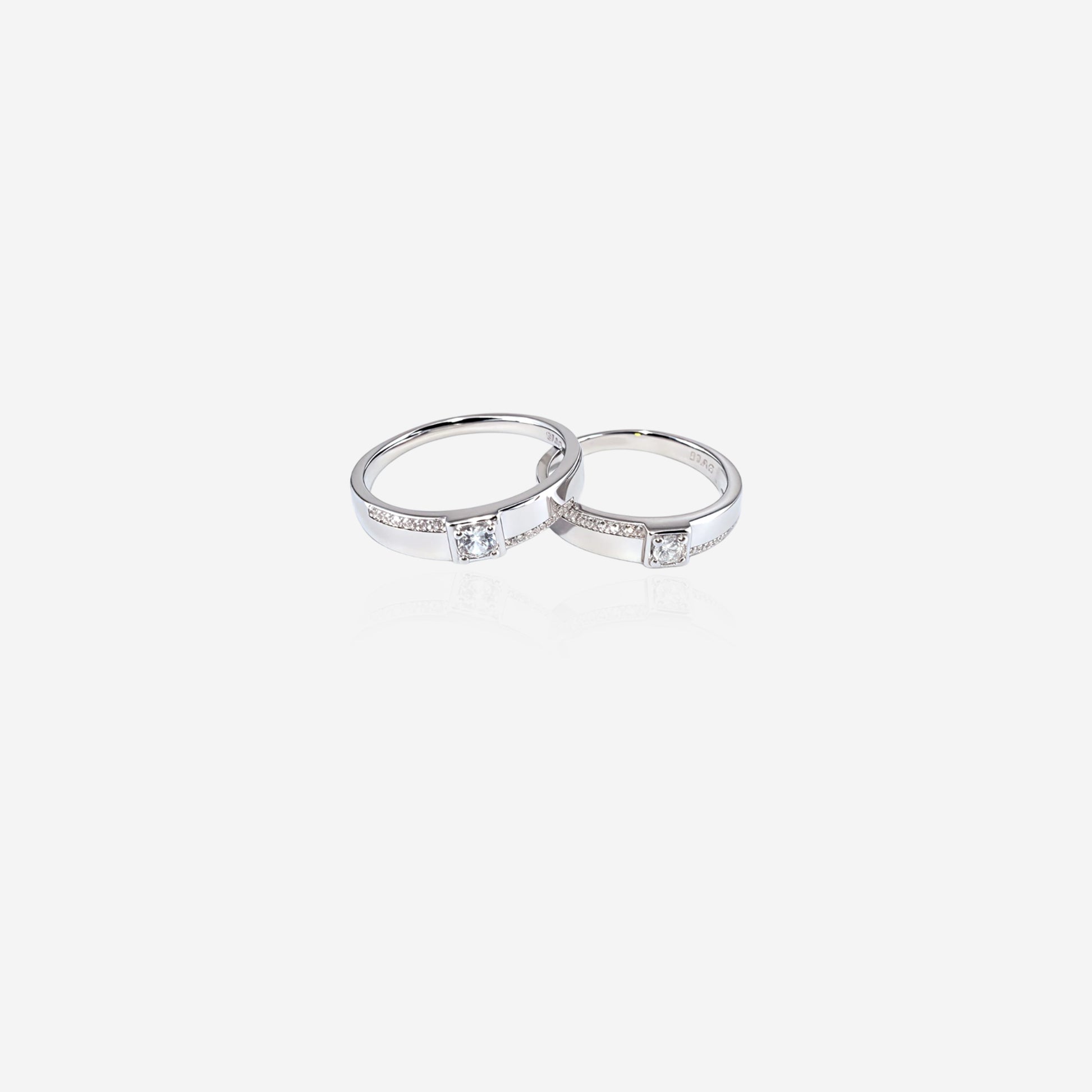 The sleek, polished finish and symmetrical design evoke elegance and unity—perfect for partners who appreciate timeless sparkle and refined craftsmanship.